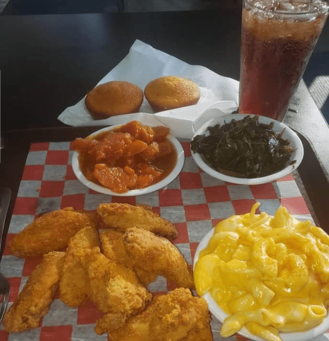 Enjoy a wide variety of southern classics like mac and cheese and collard greens.